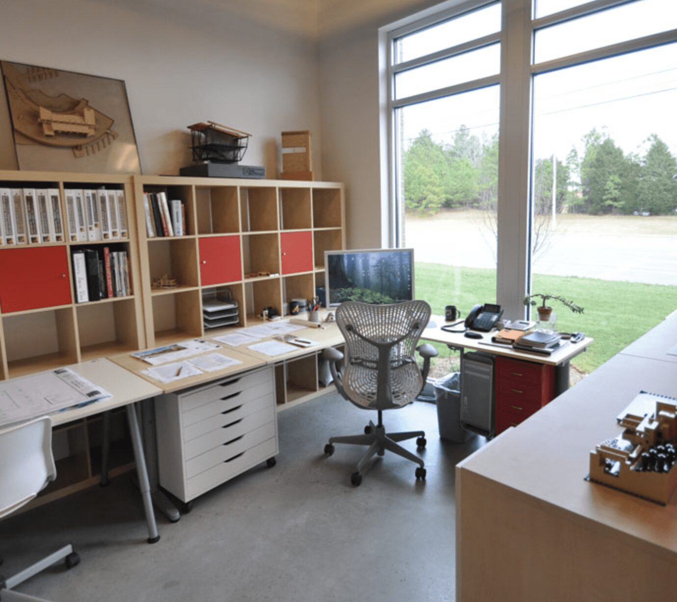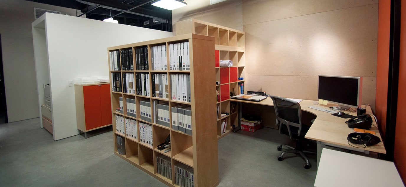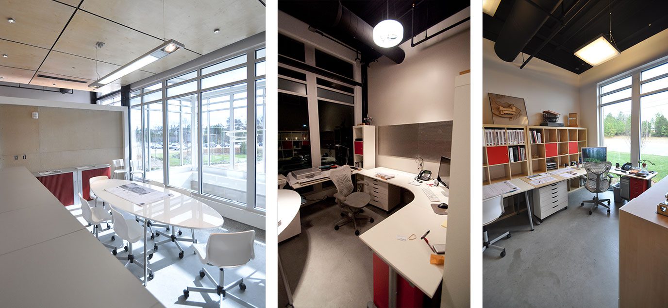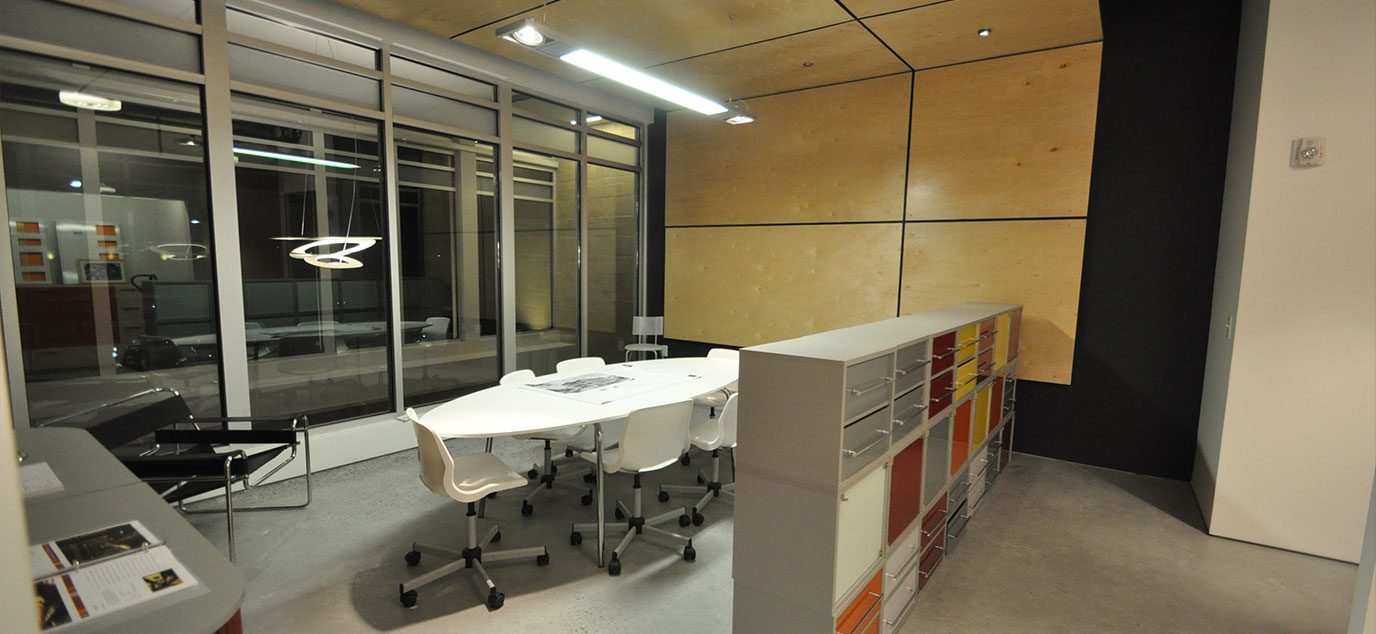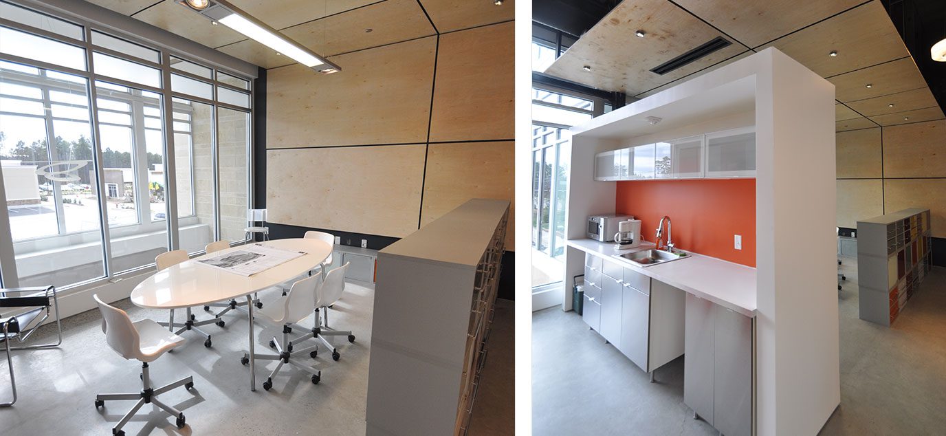Minimalist details with contrasting forms articulate the space with a style that enhances the creative environment.